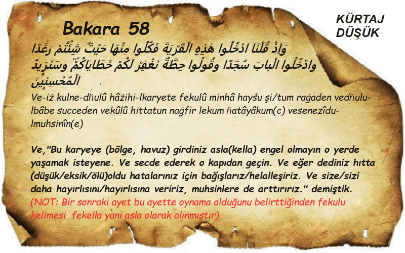Bakara Suresi 72. Hani bir zamanlar siz bir adam öldürmüştünüz de onun hakkında birbirinizle atışmış ve onu üstünüzden atmıştınız, halbuki Allah, saklamış olduğunuzu açığa çıkaracaktı. (Elmalılı Hamdi Yazır)